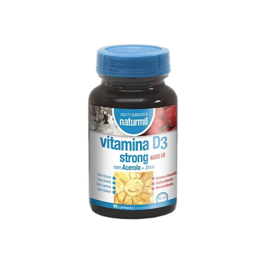 Vitamina D3 Strong da Naturmil apresenta uma formula única e reforçada para estimular as suas defesas naturais do nosso organismo, mistura a Vitamina D3 com o Zinco e Acerola que é uma fonte de Vitamina C.